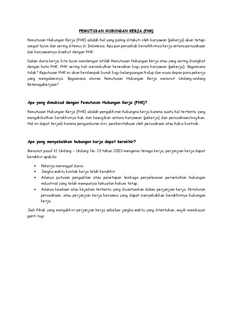 Phk Karyawan Pengertian Jenis Contoh Surat Dan Perhitungan Pesangon Talenta