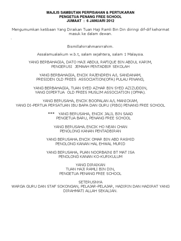 Teks Mc Majlis Perpisahan
