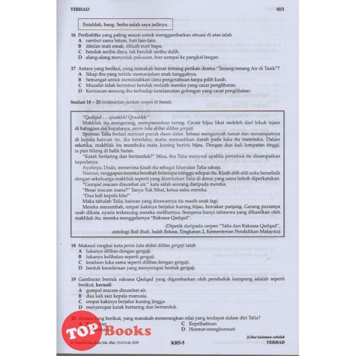 Topbooks Ilmu Bakti Kertas Ramalan Pt3 Bahasa Melayu 2020 Shopee Malaysia