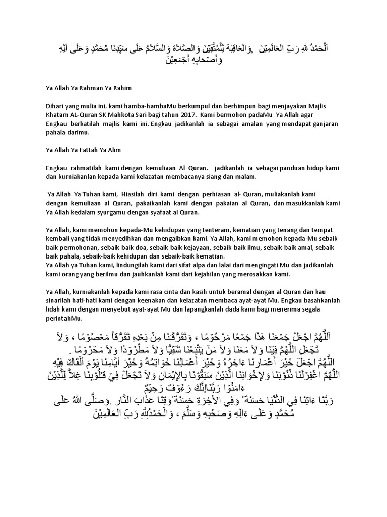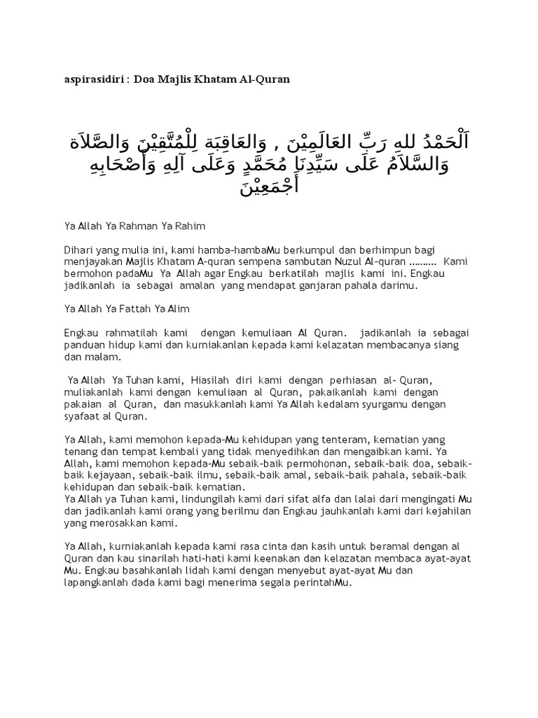 Doc Doa Majlis Khatam Al Quran Fariz Hassan Academia Edu