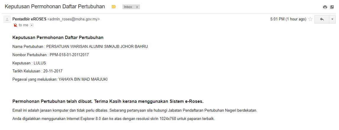 Berita Baik Utk Persatuan Jabatan Pendaftaran Pertubuhan Malaysia Negeri Selangor Facebook
