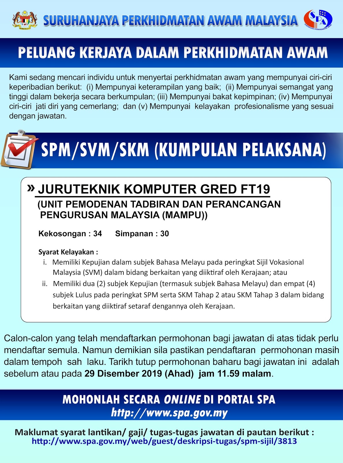 Jawatan Kosong Malaysia Iklan Peluang Kerjaya Dalam Perkhidmatan Awam Jabatan Pendaftaran Negara Spm Skm Kumpulan Pelaksana Jawatan Pembantu Pendaftaran Gred Kp19 Kekosongan 18 Simpanan 100