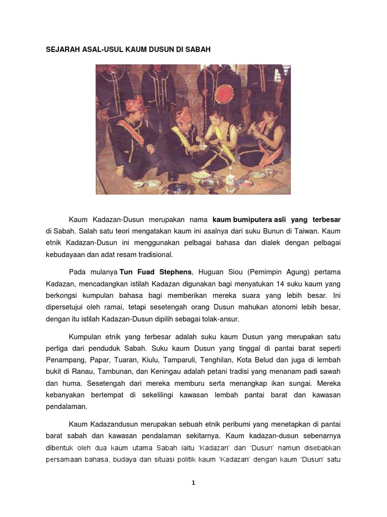 Kaum Kadazandusun Merupakan Sebuah Etnik Peribumi Yang Menetapkan Di Pantai Barat Sabah Dan Kawasan Pendalaman Sekitarnya
