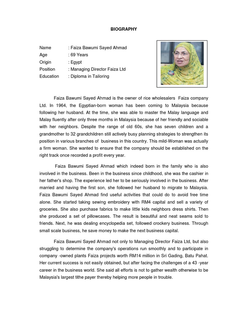 Sejarah Hidup Usahawan Faiza Sdn Bhd