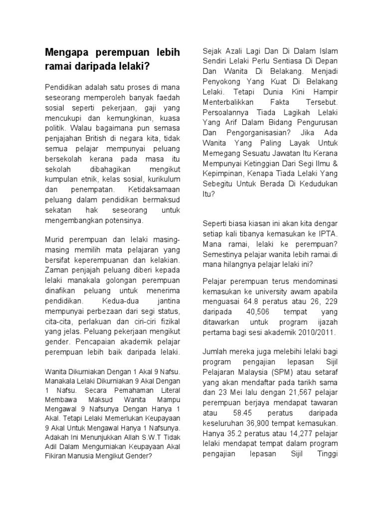 Mengapa Perempuan Lebih Ramai Daripada Lelaki