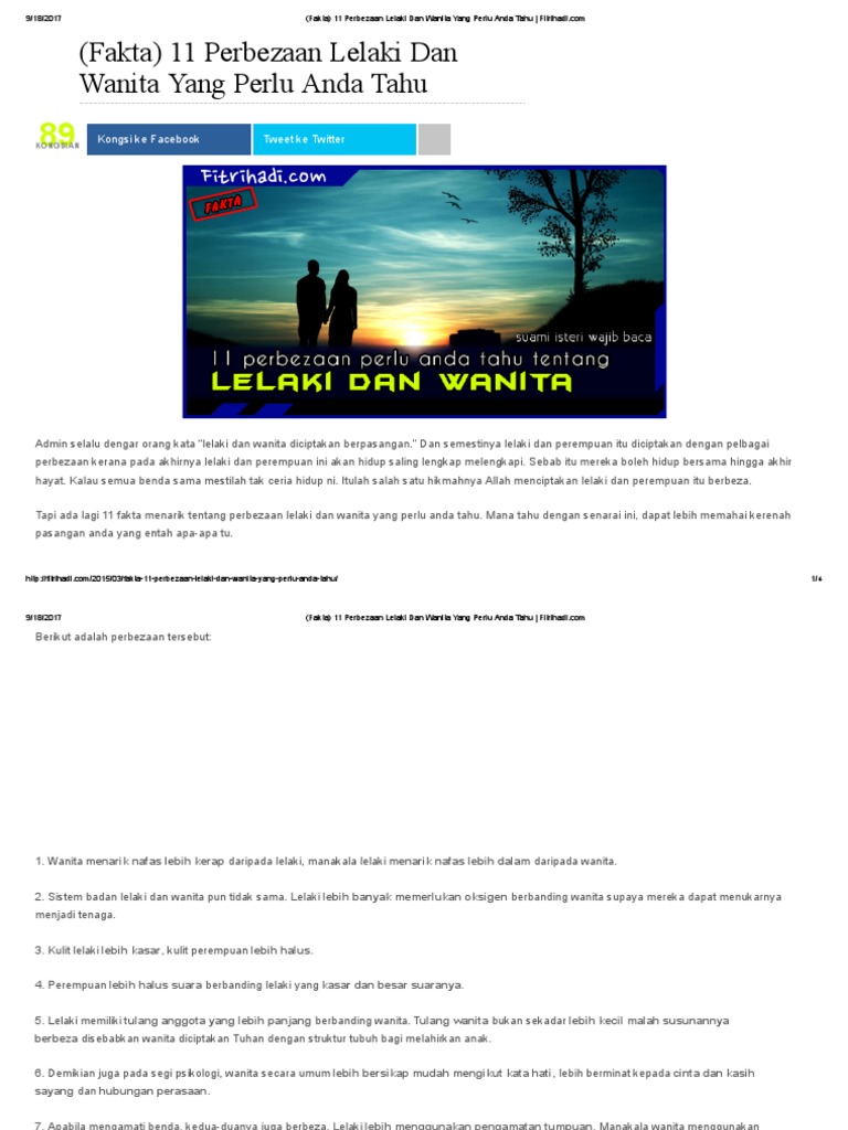 Fakta 11 Perbezaan Lelaki Dan Wanita Yang Perlu Anda Tahu Fitrihadi